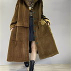 Alethea - Pardesiu lung casual din catifea cu buzunare pentru femei