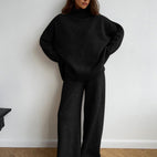 Amara asigură un confort total cu un strop de eleganță. Acest set de pantaloni din tricot cu guler rol combină un pulover moale cu pantaloni asortați, creând o imagine elegantă și armonioasă. Materialul elastic de tricot se așază foarte bine pe piele și permite libertatea de mișcare, menținându-și forma. Ideal pentru zile relaxante sau momente stilate acasă – Amara reprezintă exemplul perfect de confort și rafinament.