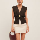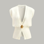 Annalena – Vestă Tricotată cu Butoane și Decolteu în V