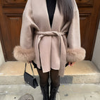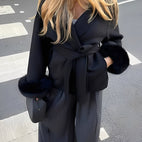 Armani - Pardesiu lung, sofisticat, elegant, cu blană pentru femei