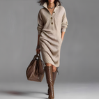 Camryn - Rochie la modă tricotată cu nasturi și guler pentru femei