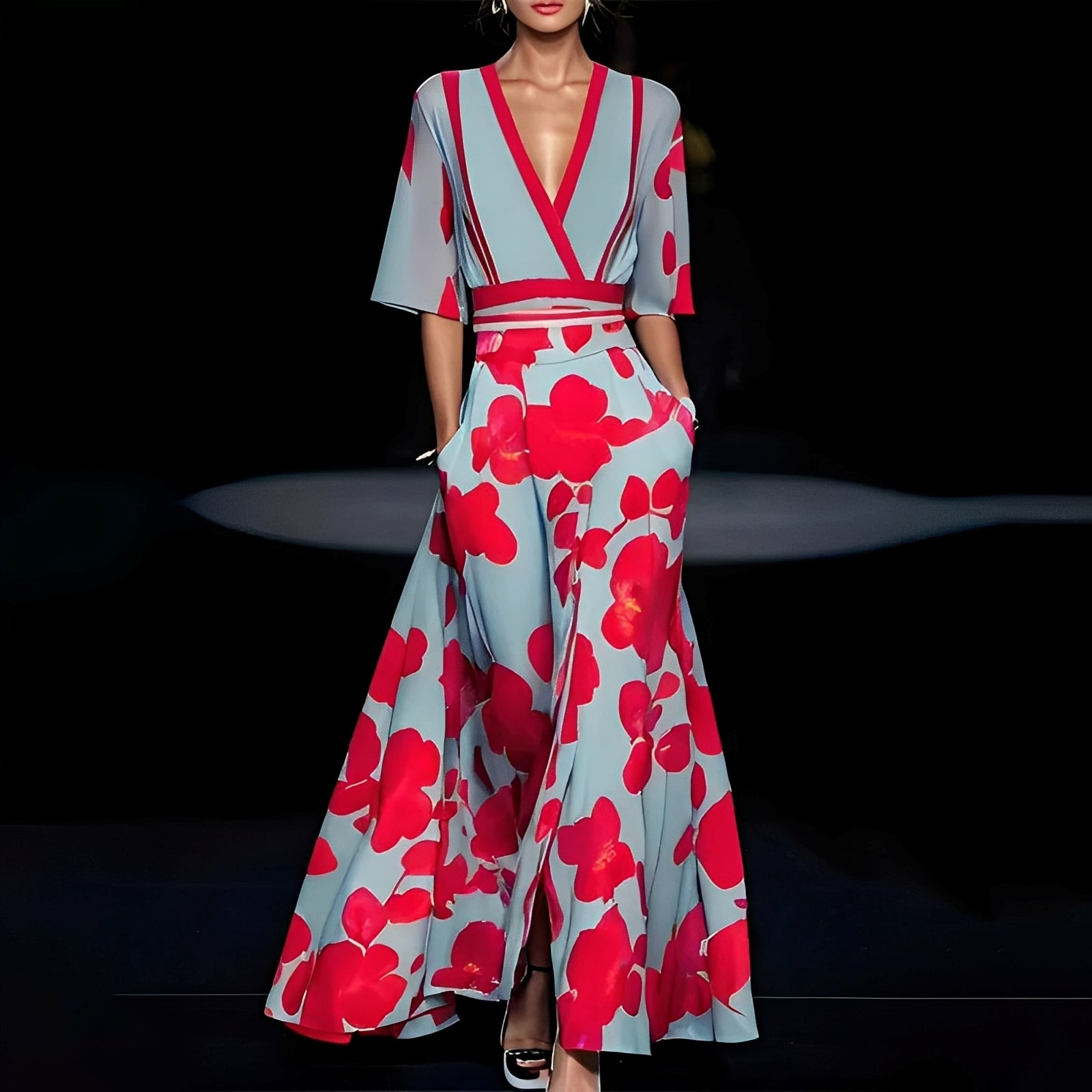 Débora - Rochie lungă elegantă cu imprimeu floral pentru femei