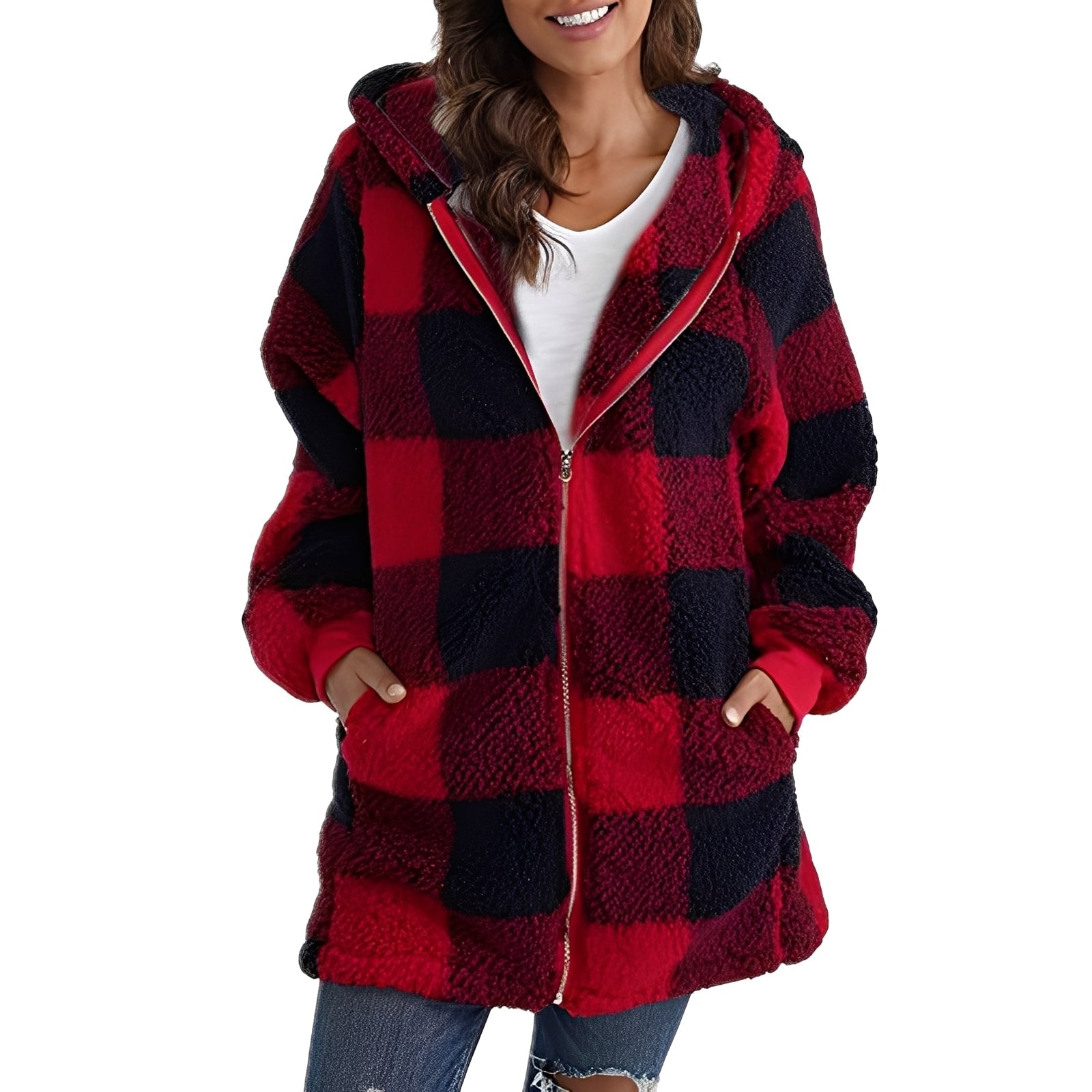 Desirae - Jachetă cu glugă în carouri pentru femei, elegantă