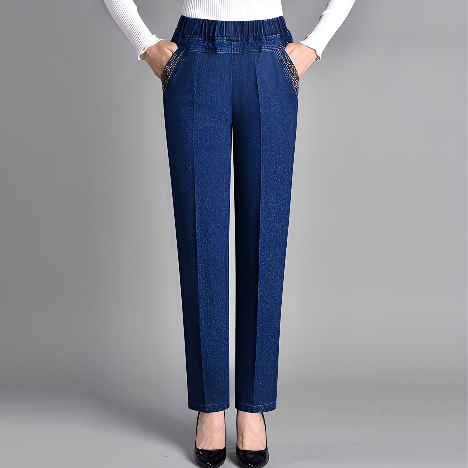 Pantalonii Doriane pentru femei, cu talie elastică, îmbină confortul, utilitatea și un stil mereu în vogă. Dintr-un material moale și elastic cu talie elastică, aceștia se mișcă împreună cu tine, oferind totodată o croială care avantajează. Buzunarele laterale adaugă utilitate zilnică, fiind perfecte pentru a-ți purta lucrurile esențiale pe drum. Croiala clasică și designul versatil fac acești pantaloni să se potrivească bine cu bluze sau cămăși casual, fie la muncă sau în timpul liber. Ușori și rezistenți, pantalonii Doriane sunt o piesă esențială în garderoba femeii moderne.