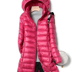 Căldură ușoară: Jacheta Elina este concepută pentru a vă menține cald fără a fi prea grea. Umplutura sa ultra-ușoară din puf oferă exact cantitatea potrivită de căldură, ceea ce o face ideală pentru zilele răcoroase, fără a vă împovăra.