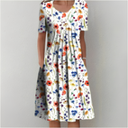 Rochia Emanuela, stilată de vară, pentru femei, îmbină feminitatea cu confortul de zi cu zi. Fabricată dintr-un material ușor și respirabil, asigură răcoare și confort în zilele fierbinți. Croiala ei evazată și flatantă oferă un aspect elegant ce se mișcă armonios cu fiecare pas. Potrivită pentru brunch-uri, vacanțe, petreceri în grădină sau ieșiri obișnuite. Această rochie versatilă de vară aduce laolaltă eleganța, confortul și stilul fără efort.