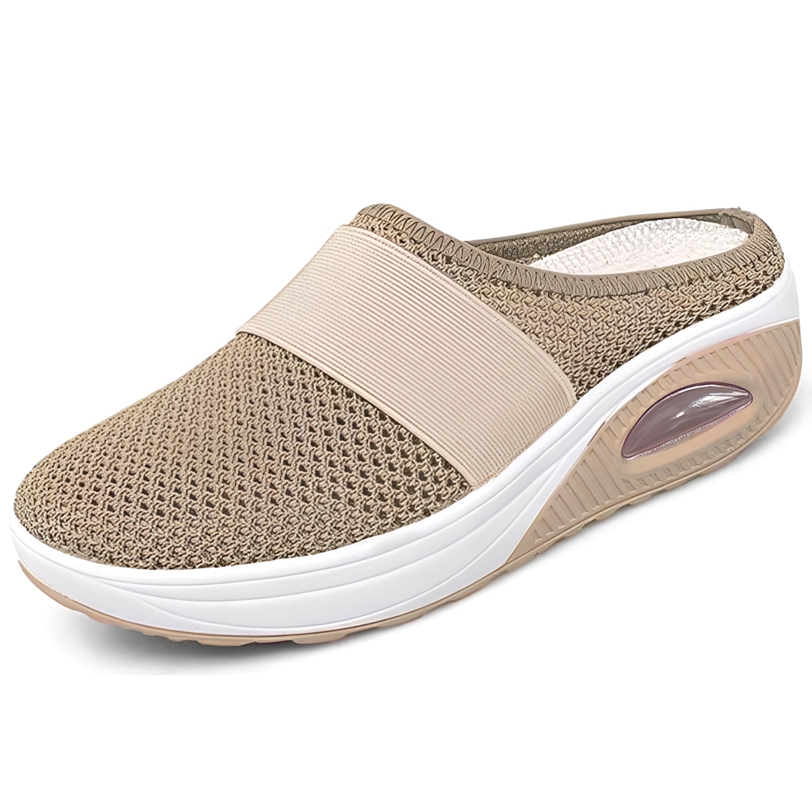 Pantofii Essie cu perne de aer sunt creați special pentru a oferi picioarelor dumneavoastră suportul și confortul de care au nevoie. Datorită formei ortopedice și tălpii cu perne de aer, mersul este mai ușor, reducând presiunea asupra articulațiilor și spatelui. Materialul care permite aerului să treacă asigură un mediu plăcut pentru picioare, iar designul lejer oferă confort maxim – ideal pentru zilele lungi în mișcare.