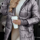 O haină de puf ce îmbină frumos funcționalitatea cu moda elegantă.
