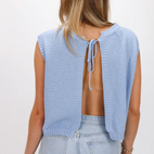 Top Tricotat pentru Femei – Fără Mâneci – Spate Deschis – Închidere cu Nod – Croială Confortabilă