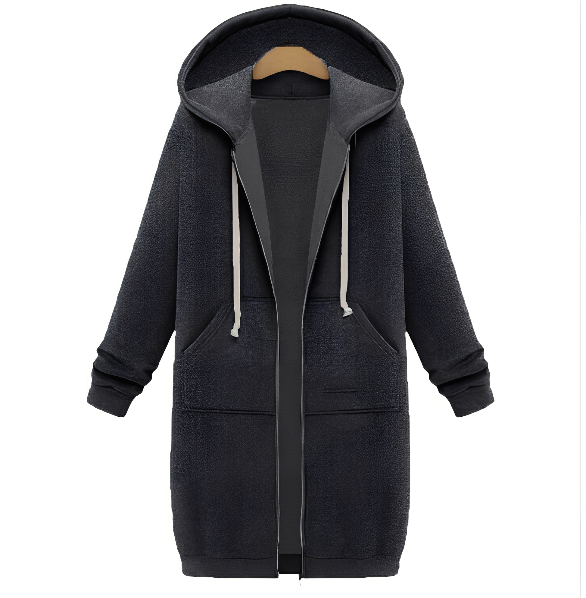 Jasmin - Jachetă lejeră cu glugă, groasă, lungă până la genunchi