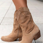 Aceste cizme îmbină elemente tradiționale western cu un aspect modern. Forma îngustă, tocurile stabile și cusăturile fine le conferă un aer elegant, potrivit pentru orice ținută. Confortul lor ridicat le face o alegere ideală pentru diverse ocazii. O piesă la modă care nu ar trebui să lipsească din nicio garderobă.