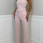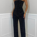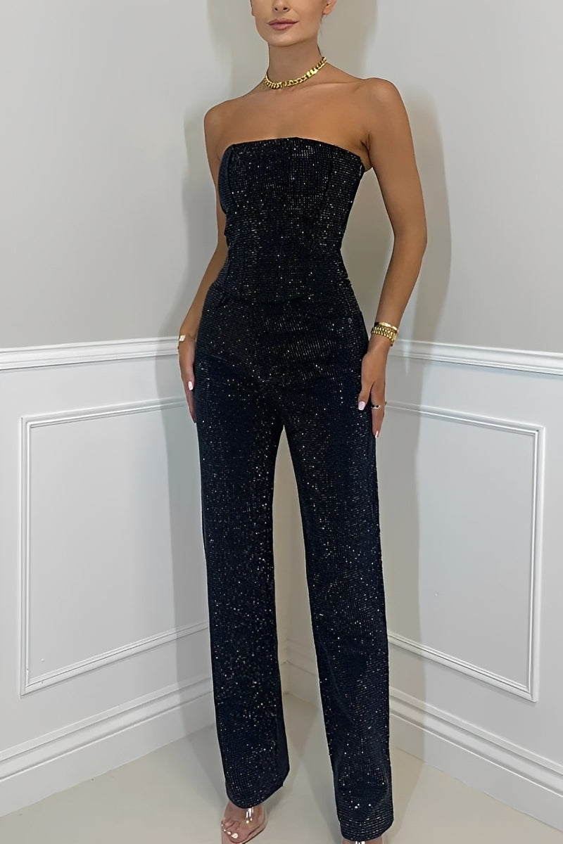 „Jessie - Salopetă fără bretele, elegantă și strălucitoare pentru femei“ îmbină eleganța cu stilul contemporan într-o piesă remarcabilă. Designul fără bretele oferă un look feminin și sigur pe sine, iar materialul strălucitor aduce un rafinament suplimentar ținutei. Ideală pentru petreceri, seri speciale sau alte evenimente în care vrei să ieși în evidență. Croiala care se mulează pe corp subliniază silueta și garantează un look modern. O salopetă care combină glamourul cu confortul.