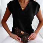 Jordana - Bluză lejeră cu mâneci scurte și decolteu în V pentru femei