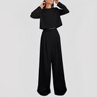 Setul Joslyn include un top și pantaloni care se potrivesc, oferind confort maxim și un design modern. Croiala relaxată permite mișcare liberă, iar materialele moi asigură o senzație plăcută la purtare. Perfect pentru timpul liber, lucrul de acasă sau întâlniri plăcute cu prietenele.