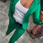 Acest set de sacou elegant îmbină stilul clasic cu umilința modernă. Materialul de calitate superioară oferă un confort plăcut, în timp ce detaliile precise creează o siluetă rafinată. Fie că este vorba de birou, evenimente sau timpul liber – acest set este opțiunea ideală pentru o apariție încrezătoare.