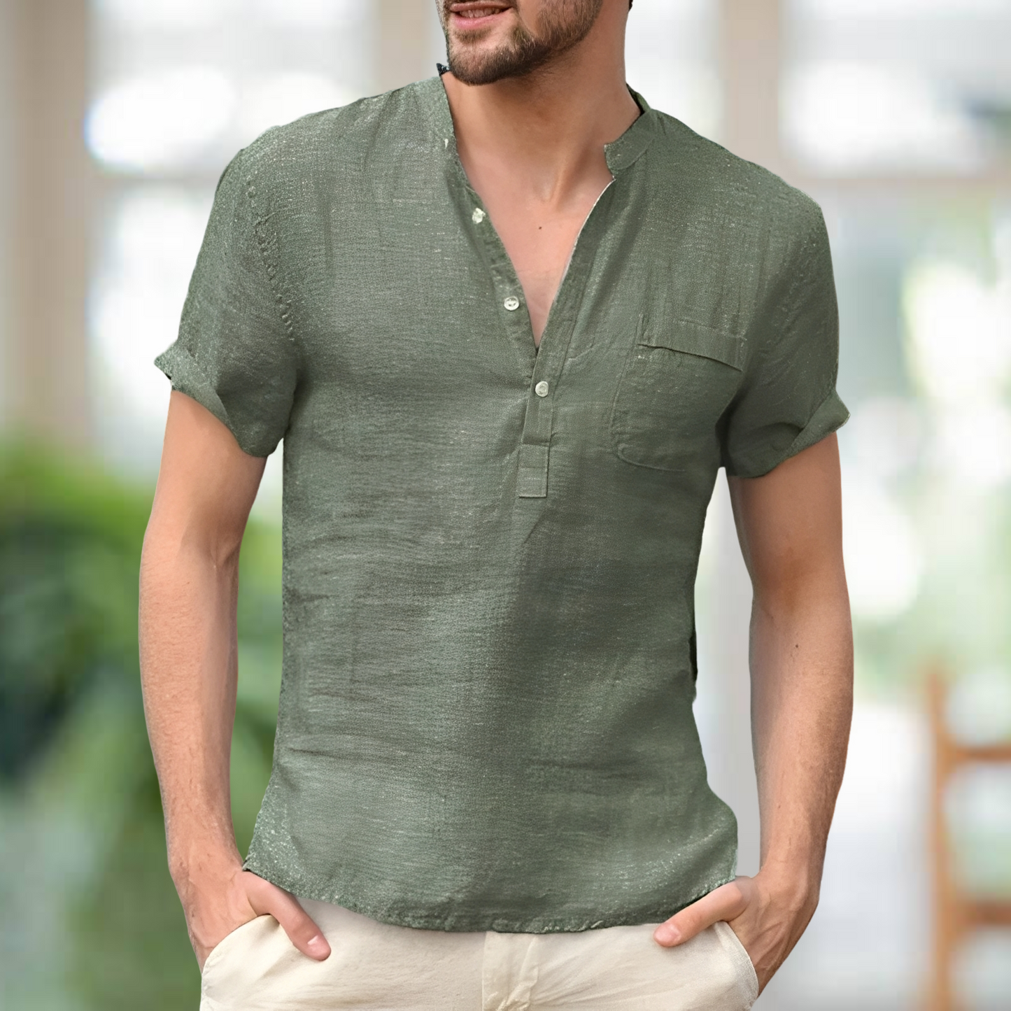 REDUCERI DE IARNĂAlton - Cămașă casual cu mânecă scurtă din in pentru bărbați