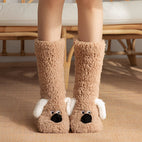Șosetele Krystelle sunt fabricate dintr-un material plușat moale și gros, menținându-vă picioarele calde. Modelul amuzant cu câine din desene animate aduce un aer vesel, iar talpa antiderapantă oferă siguranță pe suprafețele lunecoase. Sunt ideale pentru a le purta acasă, la relaxare pe canapea sau în diminețile cozy de iarnă. Aceste șosete de casă combină căldura, confortul și un stil jucăuș într-un singur produs.