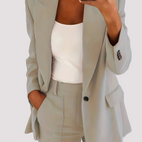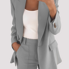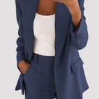 „Laura - Costume elegante, din două piese pentru femei“ combină eleganța clasică de afaceri cu un stil modern. Setul sofisticat format din sacou și pantaloni asortați asigură un aspect îngrijit și încrezător la birou sau la evenimente formale. Croiala modernă subliniază o siluetă profesională și oferă un confort plăcutbărbați Comod de purtat. Perfect pentru ședințe, întâlniri de afaceri sau ocazii speciale care necesită o apariție elegantă. Un set versatil pentru un look încrezător și stilat.