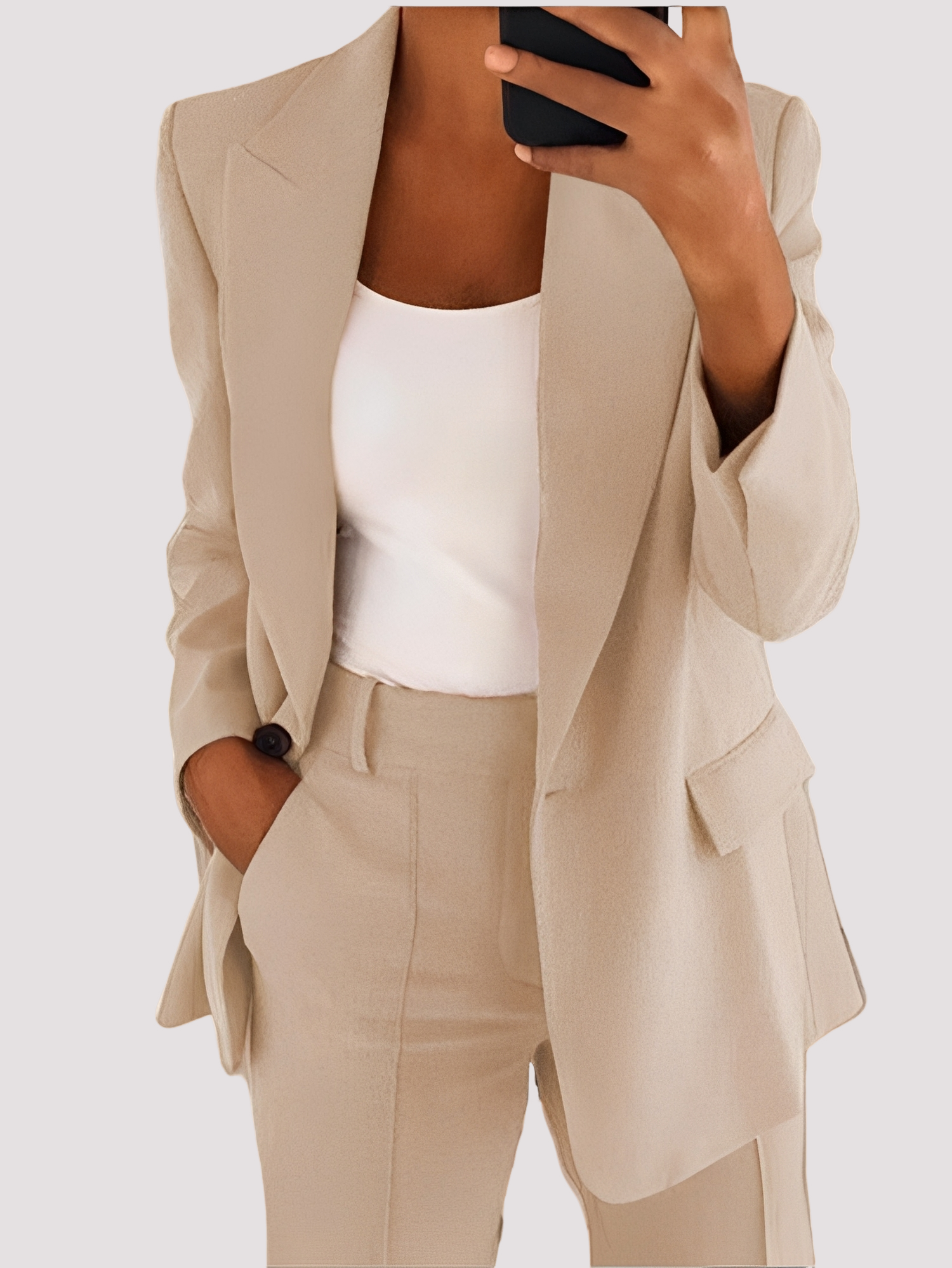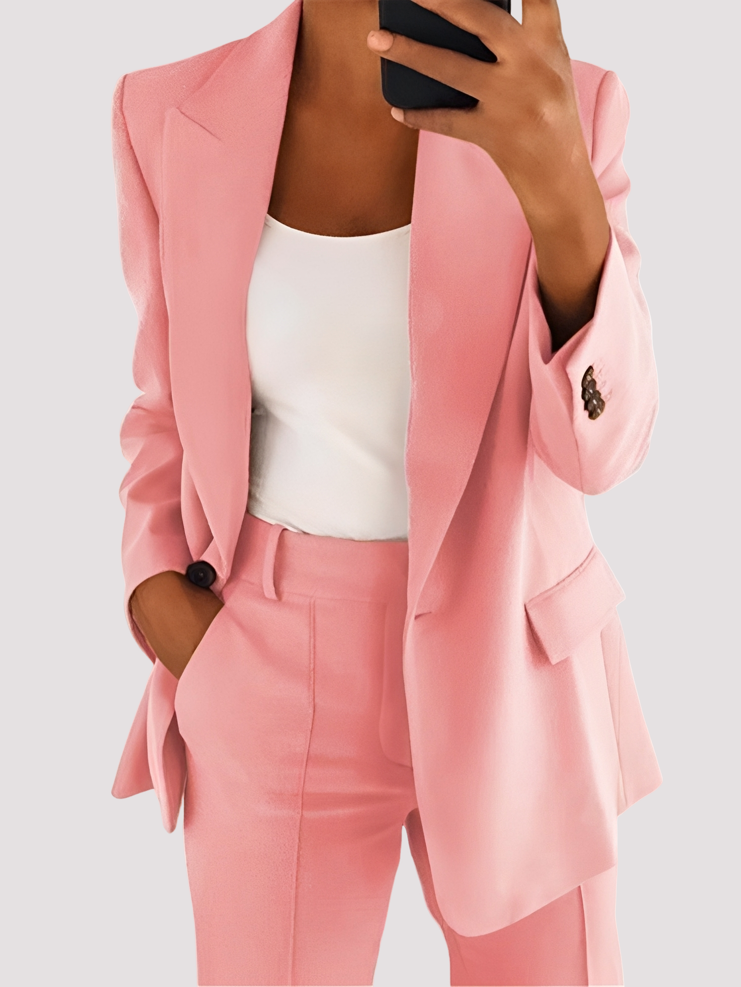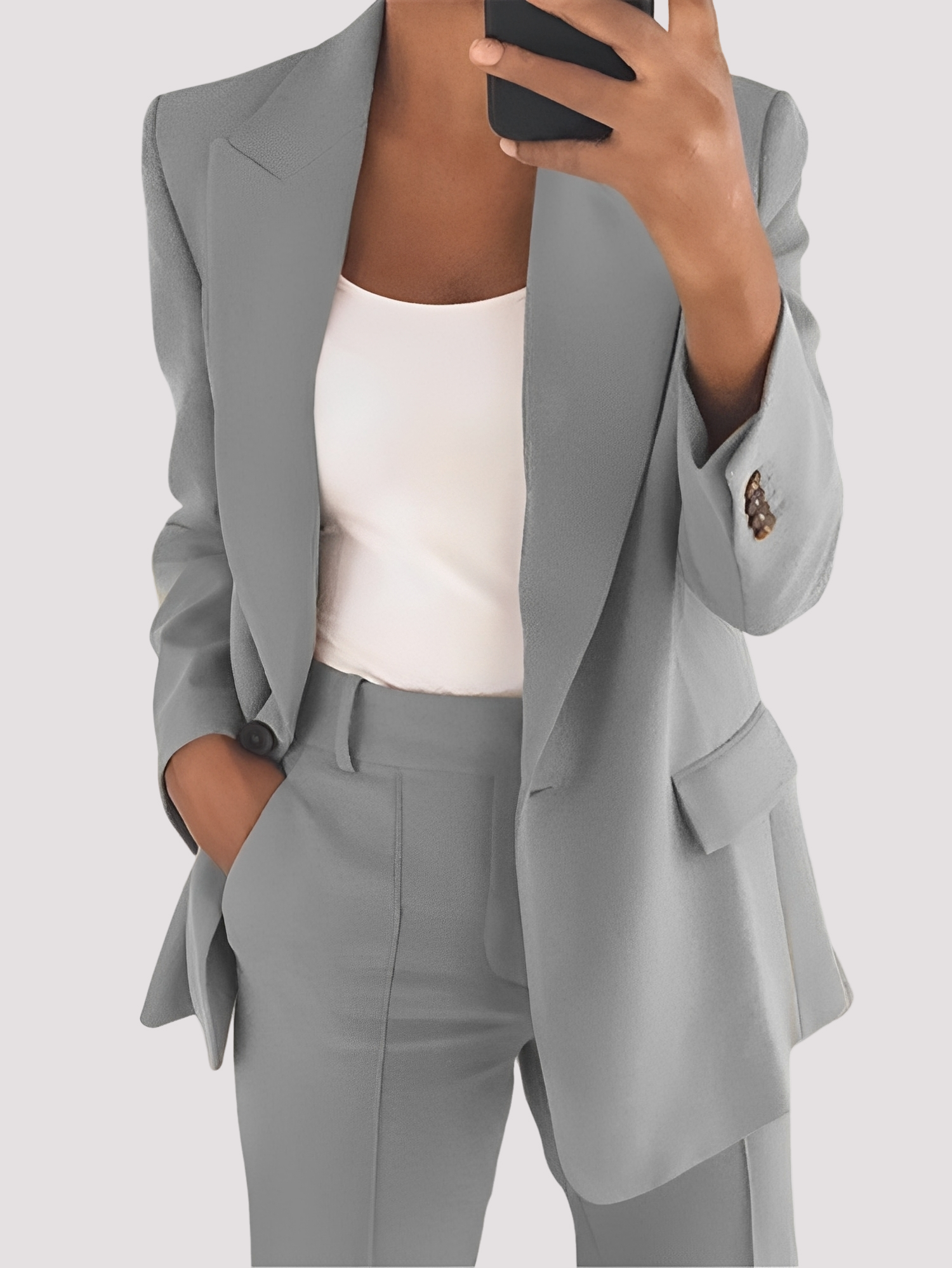 • Set sofisticat din două piese – Sacoul și pantalonii oferă un aspect stilat și coordonat