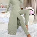 Acest set din material cu ripuri combină confortul cu un design modern într-o singură ținută. Materialul moale este plăcut la atingere, oferind un confort ridicat la purtare. Setul include un top și pantaloni asortați, iar croiala sa flexibilă asigură libertatea de mișcare. Ideal pentru zilele relaxante acasă, la plimbare sau pentru activități recreative – setul este atât versatil cât și la modă. Cu un design simplu și elegant, setul se poate combina cu ușurință cu alte articole vestimentare.