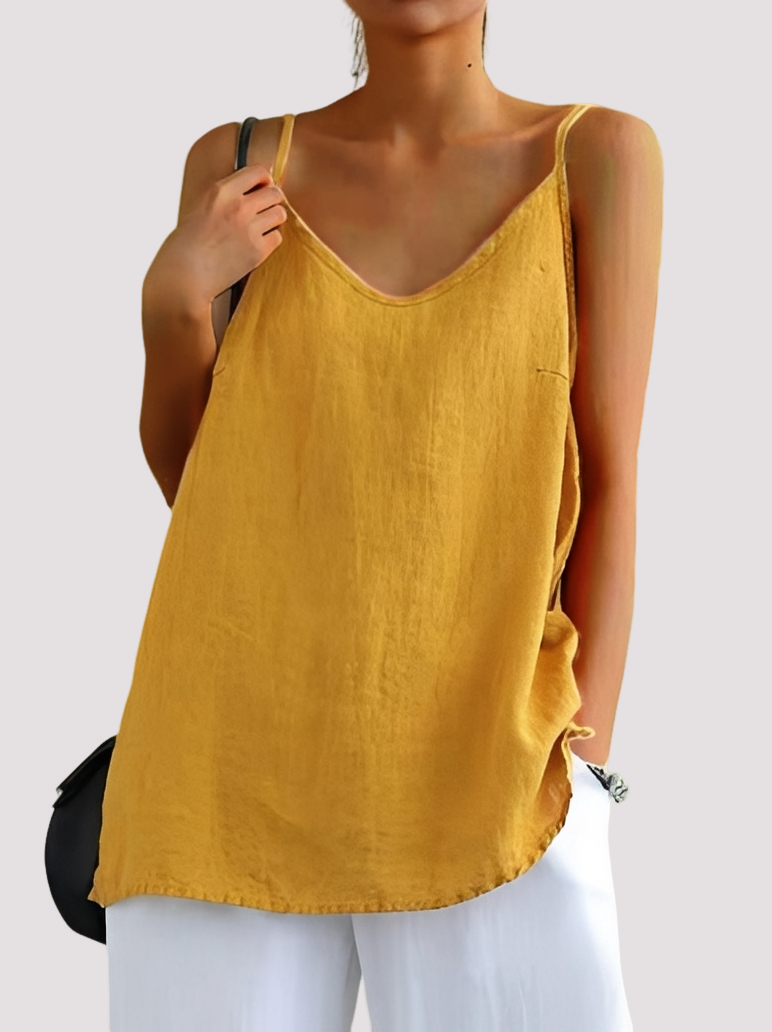 Topul Lucie se remarcă prin croiala aerisită și designul său clasic. Materialul ușor oferă o senzație plăcută la purtare în zilele fierbinți. Fără mâneci, acesta permite libertate maximă de mișcare și oferă o senzație răcoroasă de vară. Perfect pentru timp liber, vacanțe sau ținute lejere de zi cu zi. Ușor de asortat cu pantaloni, fuste sau pantaloni scurți.