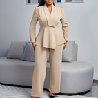 Descoperiți setul nostru Madeleine pentru femei, format dintr-un sacou lung personalizat, creat pentru a aduce eleganță, încredere și un stil clasic. Fabricat din materiale de înaltă calitate, acest set oferă un aspect stilat, asigurând în același timp un confort maxim pe parcursul întregii zile. Sacoul lung are o croială personalizată ce evidențiază silueta, iar pantalonii asortați completează un set elegant și profesionist. Perfect pentru întâlniri de afaceri, evenimente formale sau ținute office rafinate, acest set îmbogățește orice garderobă.