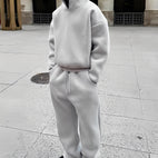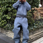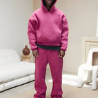 Acest set de hanorac oversize combină o croială lejeră cu un design elegant pentru bărbați. Materialul plăcut și respirabil asigură un confort excelent la purtare, iar croiala modernă oferă un aspect stilat. Perfect pentru timpul liber, sport sau momentele de relaxare acasă, setul poate fi combinat în diferite moduri, păstrându-și mereu confortul.