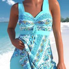 Acest costum de baie îmbină un design clasic într-o singură piesă cu o fustă subtilă, împărțită, oferind o siluetă feminină. Materialul ce se usucă rapid asigură o senzație plăcută după bălăcealăa. Perfect pentru plajă, piscină sau centre wellness. Croiala oferă siguranță și libertate de mișcare. Ideal pentru femeile care prețuiesc stilul și confortul.