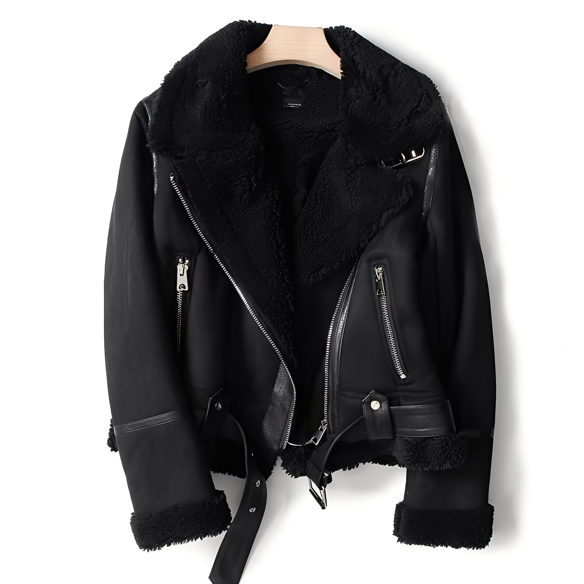 Marianne - Jachetă rafinată din piele întoarsă cu curea pentru femei