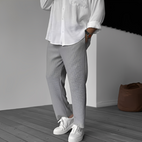 Îmbunătățește-ți stilul cotidian cu pantalonii Mathias pentru bărbați, de calitate înaltă și cu o croială lejeră. Realizat dintr-un material moale și superior, cu un design simplu și clasic, îmbină eleganța cu funcționalitatea. Fie că mergi la job, la o ieșire relaxată sau la un eveniment de seară, acești pantaloni oferă confort și stil care completează orice ținută. Designul lor discret și senzația luxoasă îi fac un element esențial și versatil pentru orice garderobă.
