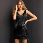 Fii în centrul atenției cu rochia noastră de cocktail cu franjuri și pene, elegantă și glamour în cele mai mici detalii.