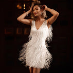 Mégane - Rochie de cocktail cu franjuri și pene pentru femei