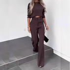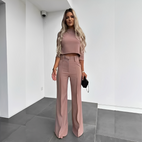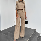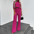 Îmbunătățiți garderoba dumneavoastră cu setul nostru modern asortat compus dintr-o bluză și pantaloni, unde stilul contemporan întâlnește confortul zilnic.
