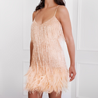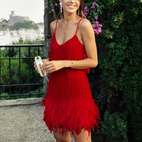 Monique - Rochie specială cu franjuri și pene pentru femei