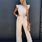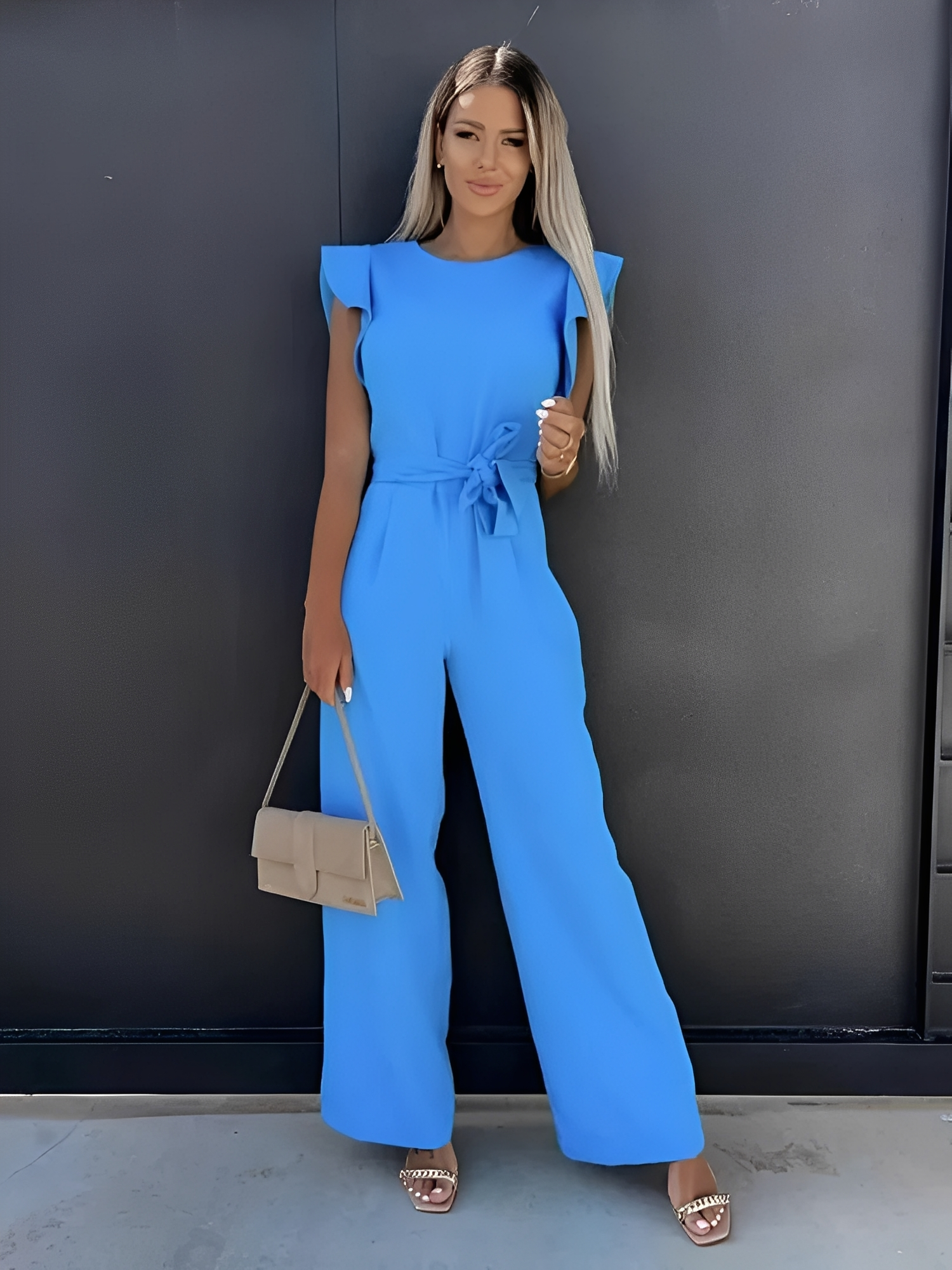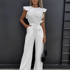 Nina Salopetă cu mâneci volan: eleganță întâlnește elemente jucăușe.