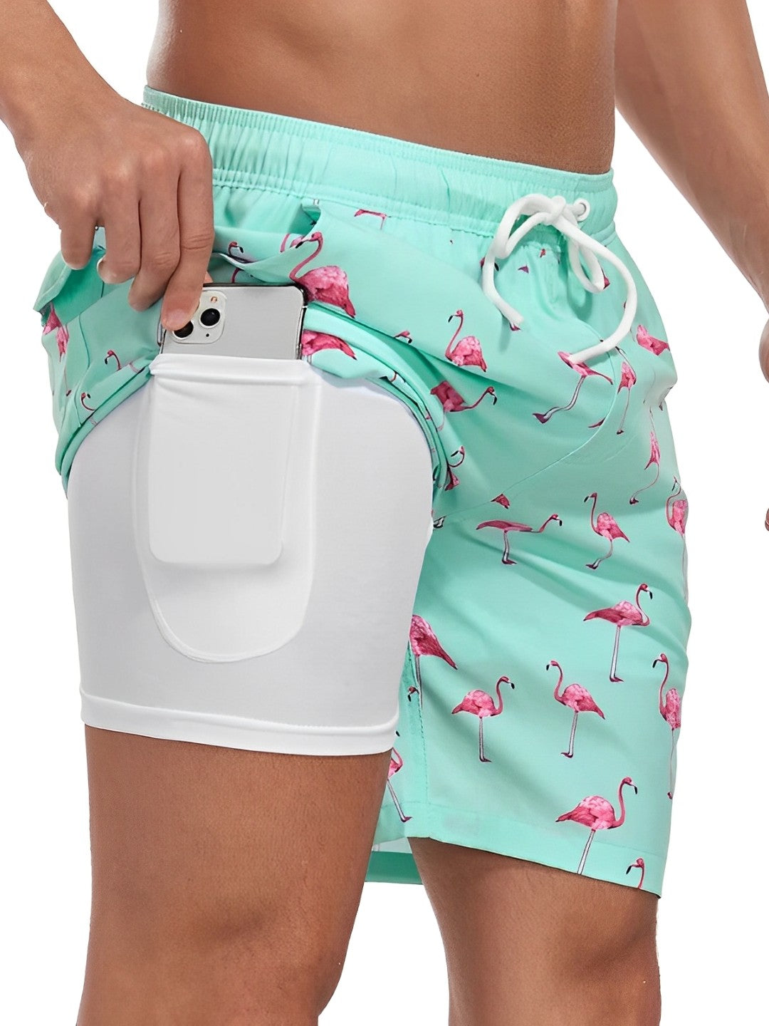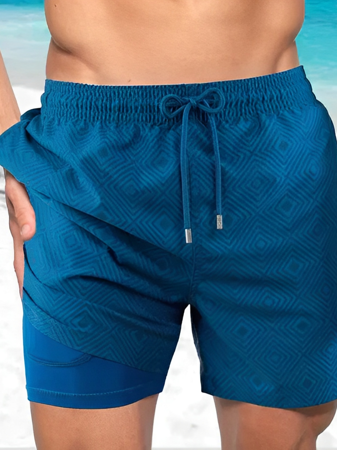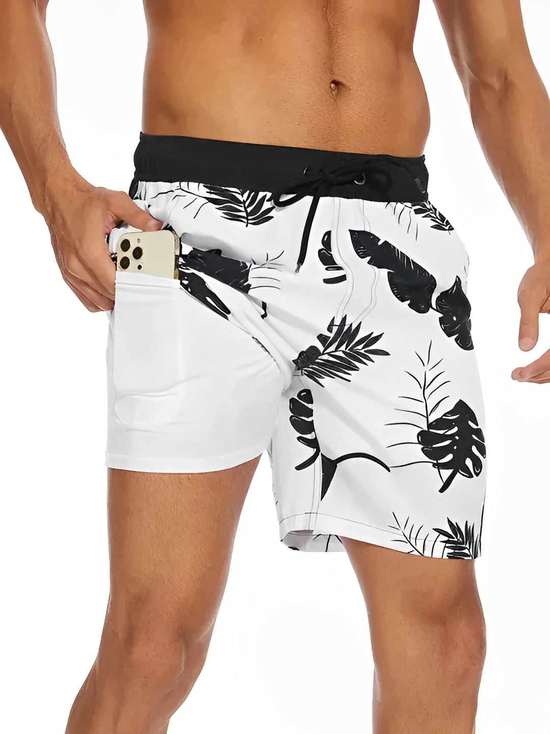 Conquistați apa cu acești șorturi de baie cu uscare rapidă și compresie interioară, concepute pentru bărbați care apreciază suportul, mobilitatea, și designul respirabil. Cu un cordon de talie, potrivire sigură, și strat interior integrat, aceste șorturi oferă confort de durată, fie că înotați, faceți surf sau vă relaxați pe plajă. Imprimeul tropical și detaliile în două tonuri adaugă o notă modernă unui element esențial de îmbrăcăminte de plajă practic.
