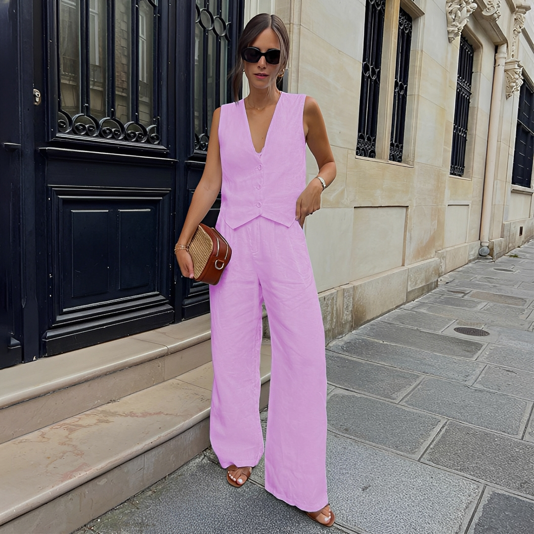 Ținuta de vară elegantă Paislie pentru femei îmbină rafinamentul cu confortul pe parcursul întregii zile. Confectionată dintr-un material lejer și respirabil, te menține fresh în timp ce îți scoate în evidență look-ul stilat și elegant. Ideală pentru ieșiri relaxate, întâlniri sociale sau evenimente estivale, această ținută este versatilă și ușor de asortat. Croiala avantajoasă îți subliniază eleganța naturală, devenind o alegere esențială pentru femeile care caută atât confort, cât și stil. Asorteaz-o cu sandale, tocuri sau accesorii pentru un look de vară desăvârșit.