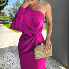 Pauline - Rochie elegantă cu un singur umăr, drapată pentru femei
