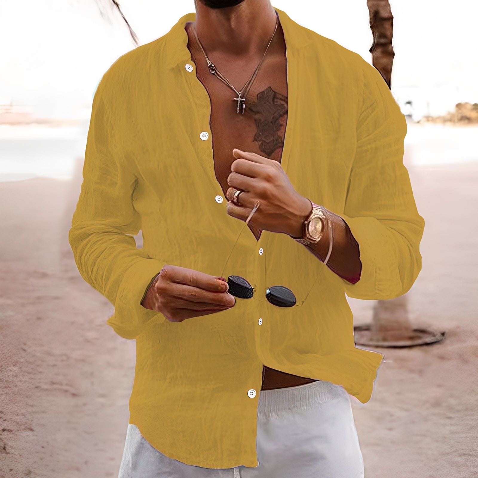 Această cămașă lejeră din in, care permite pielii să respire, oferă un confort excelent și o siluetă relaxată. Materialul natural permite o ventilație optimă, iar croiala clasică oferă un aspect stilat și casual. Ideală pentru uzul zilnic, timpul liber sau activități în aer liber vara, această cămașă este un element versatil și de bază înorice garderobă masculină.colecția ta vestimentară.