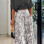 Două piese Scarlett - Două piese de vară pentru dame?constă dintr-o cămașă stilată cu mâneci de lungime medie și pantaloni cu picior larg pentru diverse ocazii.