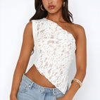 Top Femei Umăr Unic - Dantelă cu Model Floral - Design Asimetric - Croială Elegantă: Acest top magnific cu umăr unic combină eleganța cu un design modern și asimetric. Un adevărat punct de atracție!