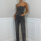 Selina – Combinație fără umeri – Intrare glamour cu material strălucitor