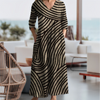 Descoperiți rochia cu dungi Simonne Vintage, concepută pentru a aduce o notă clasică și un stil relaxat garderobei dumneavoastră. Cu decolteul său în V măgulitor și modelul său cu dungi chic, această rochie îmbină confortul și sofisticarea. Croiala sa lungă până la glezne și buzunarele funcționale o fac perfectă pentru ieșiri relaxate, zile liniștite sau chiar ocazii semi-formale. Confecționată dintr-un material moale și respirabil, garantează confort pe tot parcursul zilei, indiferent de sezon. Adăugați cu ușurință o notă vintage oricărei ținute.