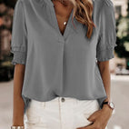 Sophia – Bluza cu Decolteu în V și Mâneci Scurte