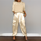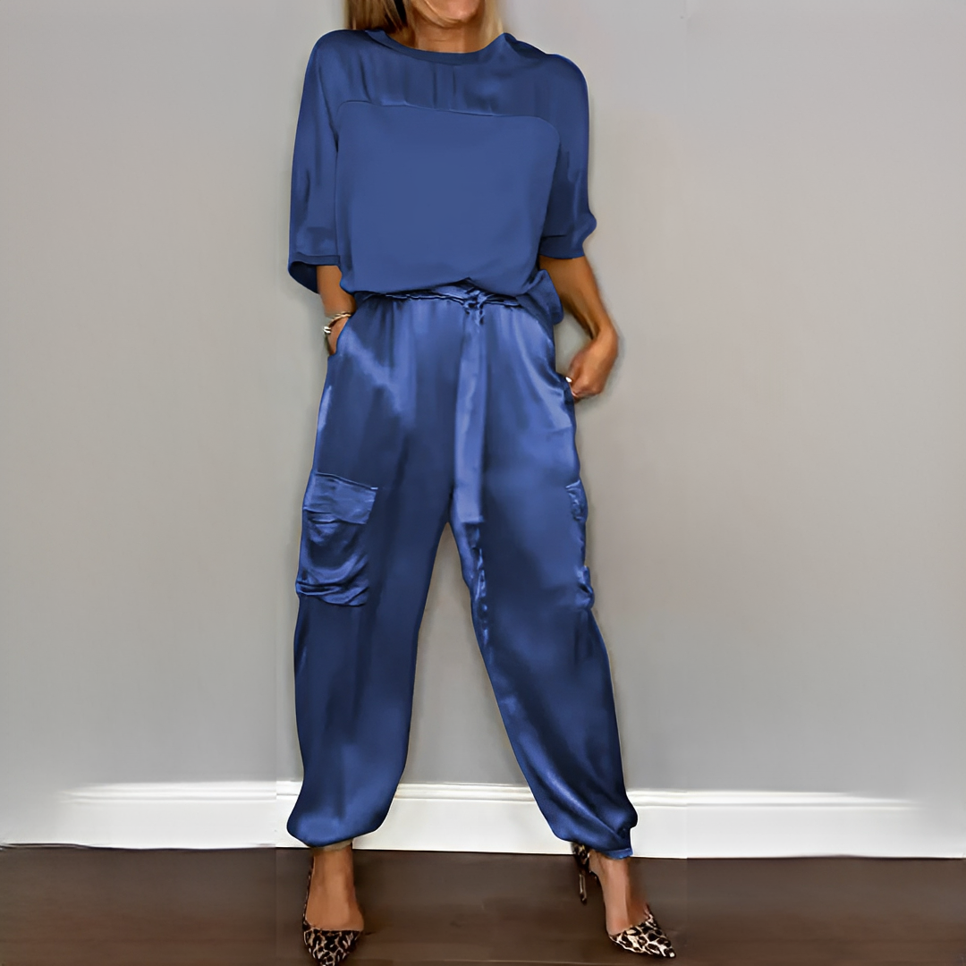 Elegantul set în două piese Zaida este creat pentru femeile care își doresc un aspect rafinat și ușor de obținut. Această ținută feminină și modernă îmbină confortul cu o siluetă avantajoasă, fiind perfectă pentru evenimente casual sau formale. Realizat dintr-un material plăcut și aerisit, oferă confort fără a pierde din stil. Designul său armonios facilitează stilizarea, permițându-vă să arătați elegantă rapid. O piesă versatilă care combină eleganța cu confortul în fiecare zi.