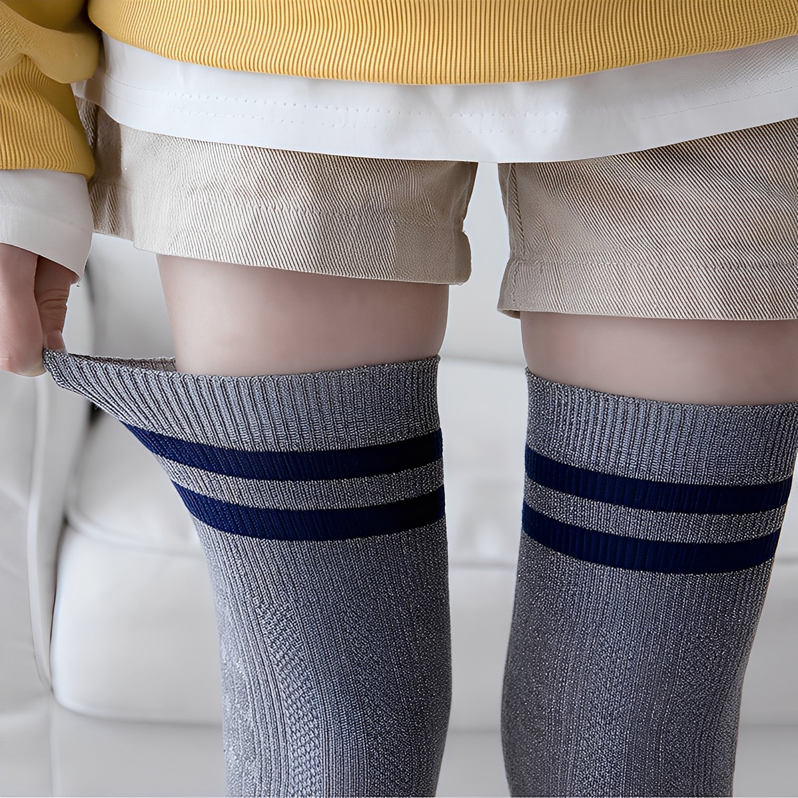 Șosetele Zella îmbină un stil modern peste genunchi cu un material călduros și plăcut. Se așază ușor pe picioare și asigură o căldură confortabilă, în timp ce materialul elastic oferă un suport excelent. Ideale pentru activitățile zilnice, munca de acasă sau plimbările relaxante în sezonul rece. Designul sofisticat face din aceste șosete un accesoriu versatil pentru orice ținută.