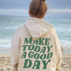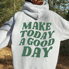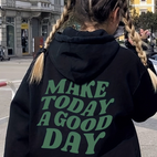 Hanoracul "Zi Bună!" este perfect pentru ieșiri relaxante sau zile confortabile și este cea mai bună alegere dacă vrei să răspândești bună dispoziție și să te bucuri de confort fără efort. Ieși din casă cu încredere și un zâmbet și transformă fiecare zi într-o zi bună cu această ținută stilată și motivantă.